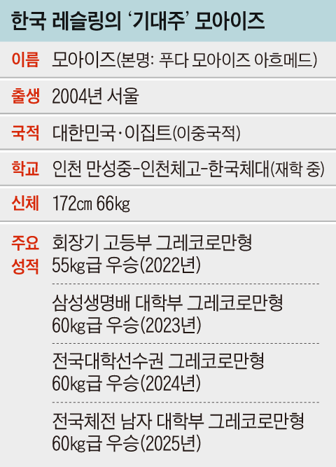 Pertama kali, gulat adalah olahraga andalan Korea. Dimulai dengan medali emas sejarah Yang Jeong-mo di Olimpiade Montreal 1976, Korea memperoleh 11 medali emas, 11 perak, dan 14 perunggu dalam Olimpiade. Namun, krisis medali dimulai setelah medali emas Kim Hyun-woo pada Olimpiade London 2012 dan perunggu di Olimpiade Rio 2016. Pada Olimpiade Paris tahun lalu, tiga atlet gulat Korea gagal melaju melewati babak pertama. Sebagai atlet gulat naturalis pertama Korea, Mo Aiz memiliki tujuan segera berlaga di Asian Games Aichi-Nagoya tahun depan. Pertama, ia harus lolos ujian tim nasional yang terdiri dari tiga babak kualifikasi. "Saya ingin mendengar bahwa gulat Korea telah bangkit kembali," katanya. "Dan saya ingin berada di tengah-tengah pemulihan ini sebagai juara Olimpiade. Saya akan memberikan segalanya untuk gulat."