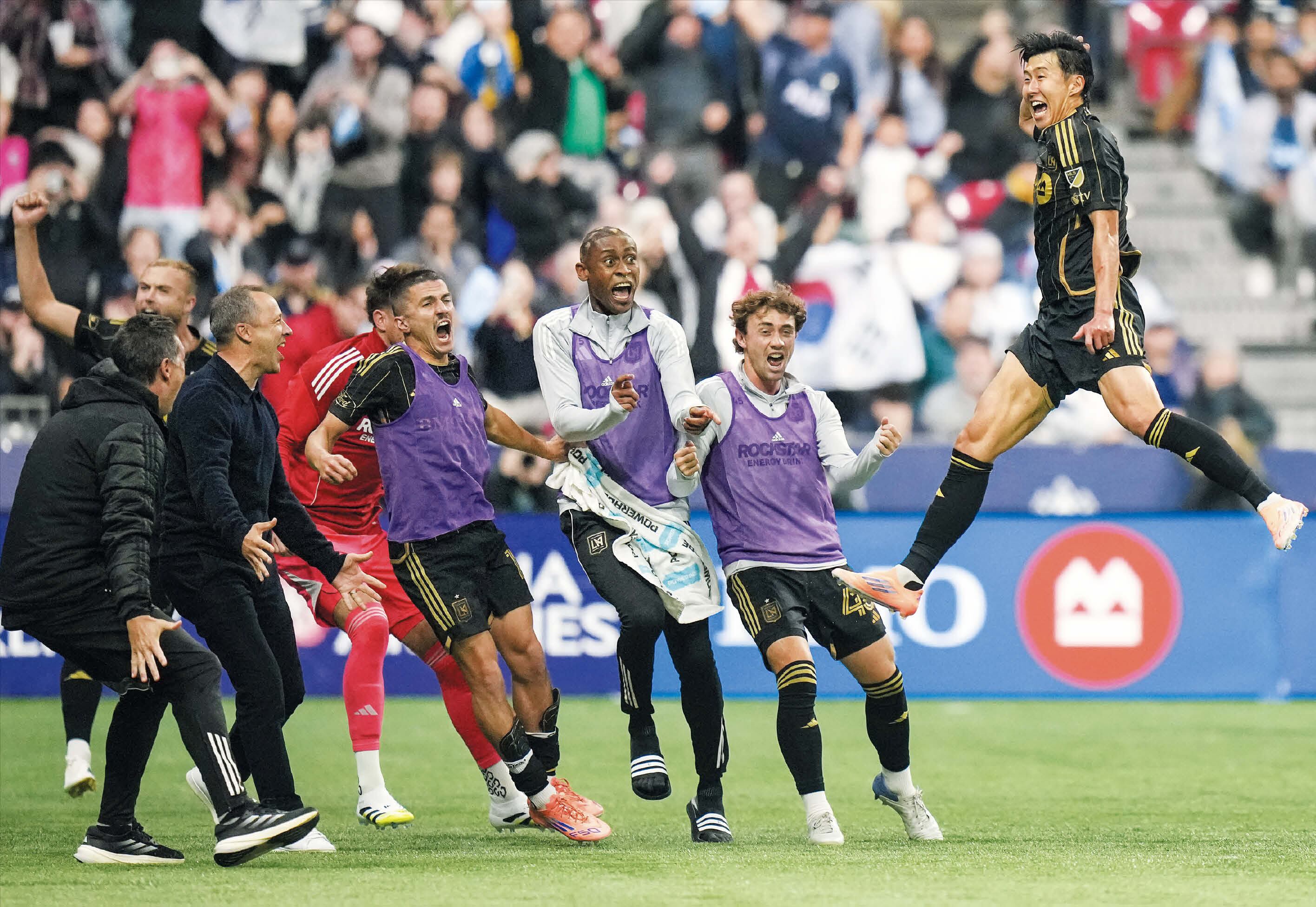 Tertinggal 1-2 di masa tambahan, LAFC mendapatkan kesempatan emas dari sisi kiri area penalti setelah pemain bertahan Vancouver, Tristan Blackmon, diusir keluar lapangan karena menerima kartu kuning berulang. Son Heung-min, yang dikenal dengan kemampuan tendangan bebasnya yang baik, kembali maju. Setelah memenangkan penghargaan 'Goal of the Year' MLS dengan tendangan bebas yang indah melawan Dallas pada Agustus dan mencetak gol dari posisi serupa dalam pertandingan A melawan Bolivia pada tanggal 14, ia tidak mengecewakan kali ini. Bola dari kaki kanan Son Heung-min tepat mengenai sudut kiri atas gawang. Ia melompat ke udara dengan gembira untuk menikmati momen tersebut.